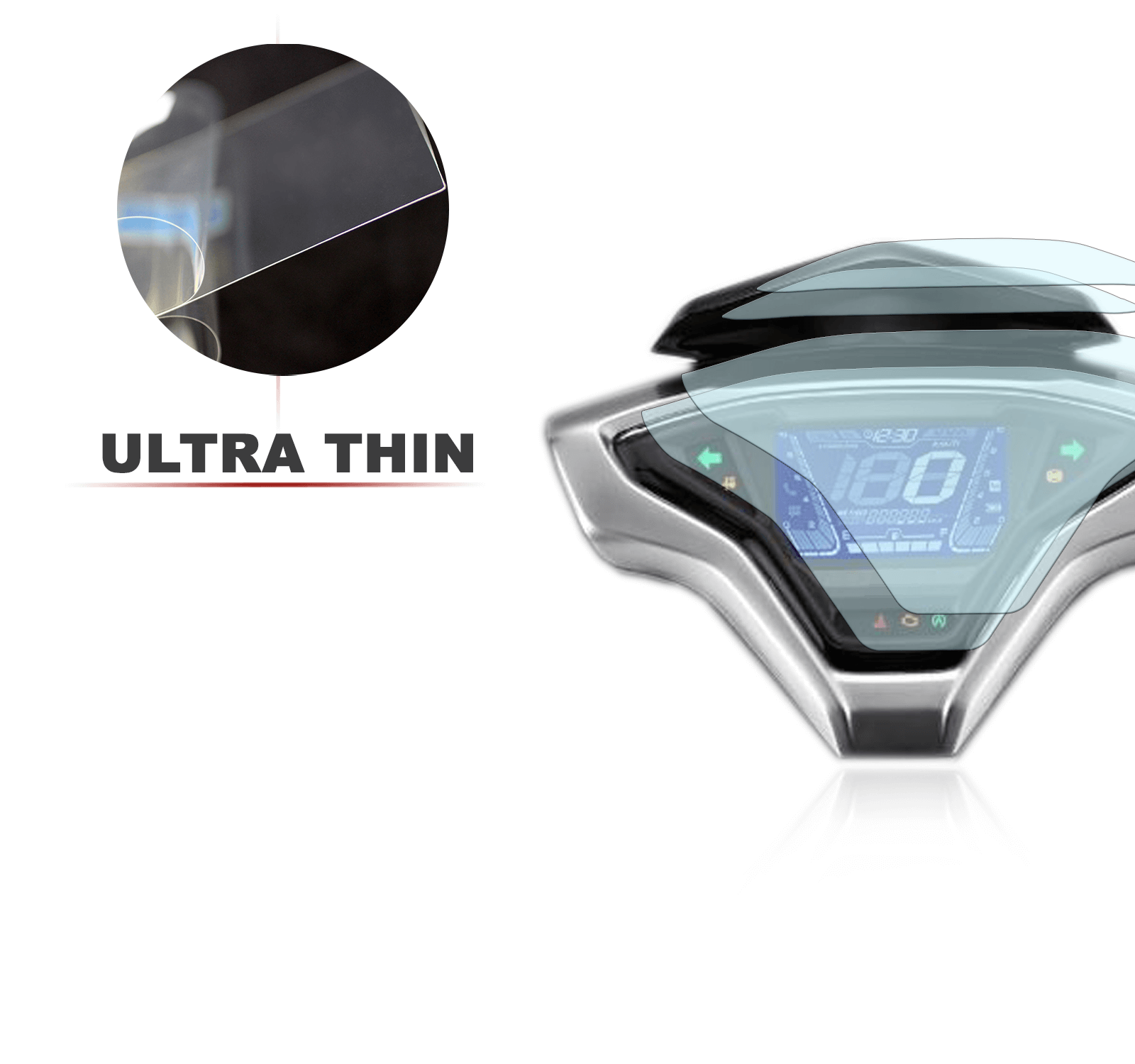Our protective film can be applied in no time at all. With clear instructions and no need for special tools, you can apply the film to your motorcycle speedometer display quickly and easily. Enjoy instant protection with minimum effort and maximum efficiency. With Moto Screenies, your display will be protected in no time!