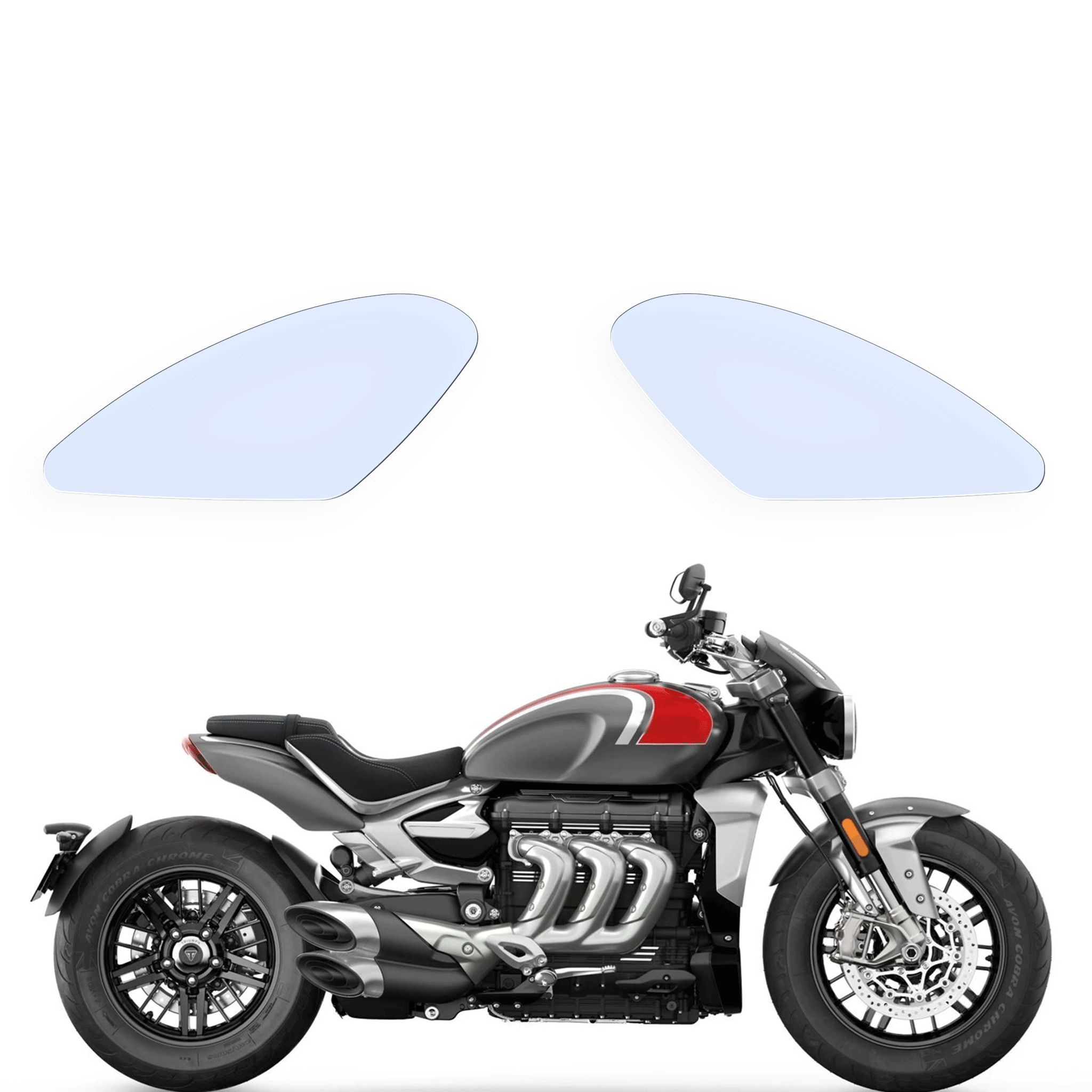 Transparente Tankschutzfolie für Triumph Rocket 3 R (2020-2024). Das selbstklebende Tankpad schützt zuverlässig vor Kratzern durch Reißverschlüsse, Gürtelschnallen oder Tankrucksäcke. Passgenau für die Tankform geschnitten und nahezu unsichtbar – ideal für sportliche Motorräder, die ohne optische Veränderung geschützt werden sollen. UV-beständig, wetterfest und rückstandslos entfernbar. Der perfekte Lackschutz für Supersportler, Tourer und Naked Bikes.