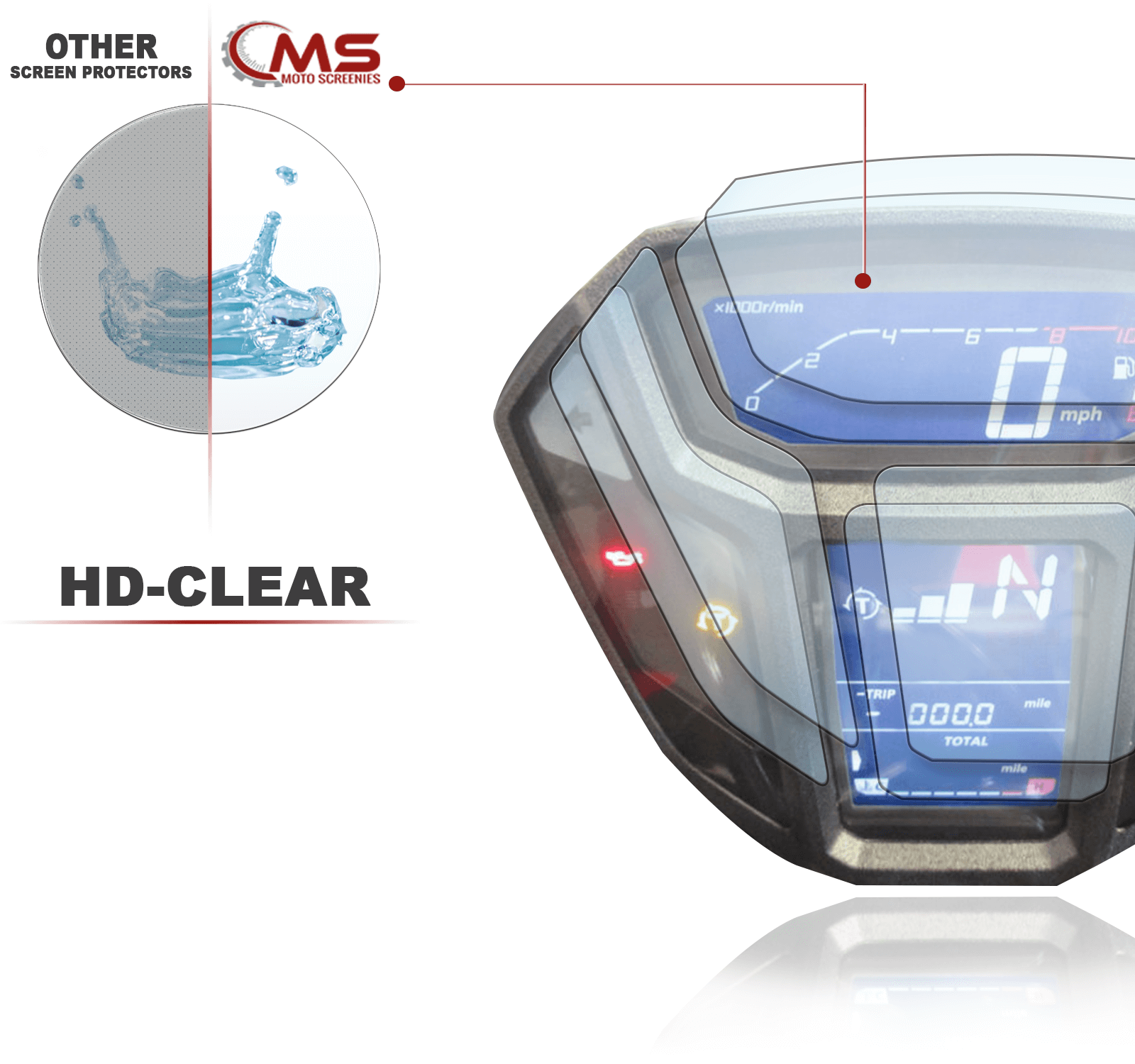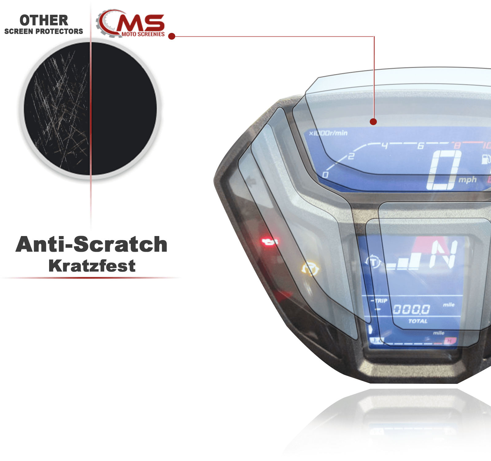 La nostra pellicola protettiva può essere applicata in pochissimo tempo. Con istruzioni chiare e senza bisogno di strumenti speciali, puoi applicare la pellicola sul display del tachimetro della tua moto in modo semplice e veloce. Goditi una protezione istantanea con il minimo sforzo e la massima efficienza. Con Moto Screenies, il tuo display sarà protetto in un attimo!
