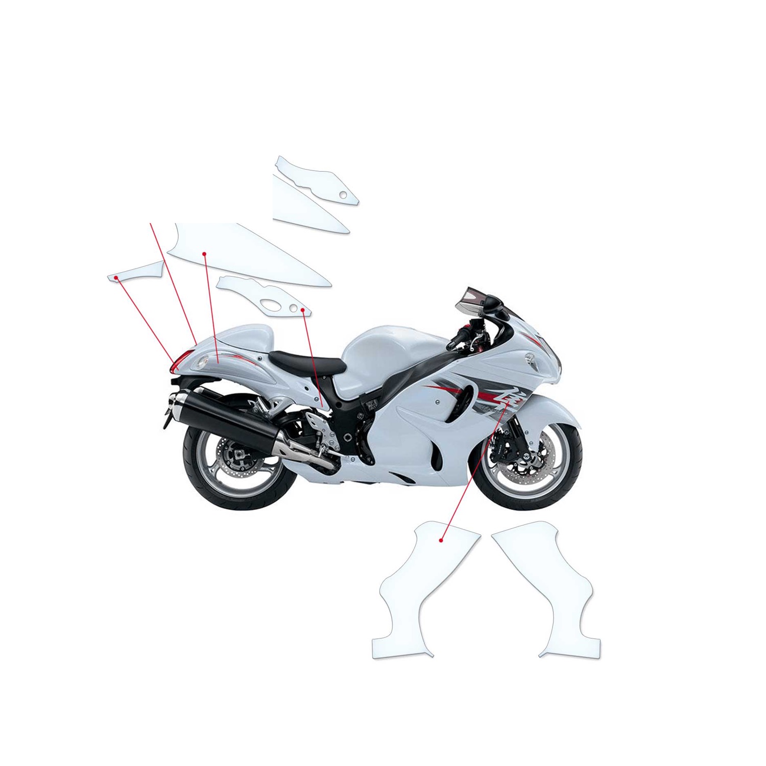 Unsere maßgeschneiderte Lackschutzfolie für Suzuki Hayabusa 2014-2020 vereint modernste Materialien mit präziser Fertigung, um dein Bike zuverlässig vor Steinschlägen, Kratzern und Witterungseinflüssen zu schützen – ohne die Optik zu verändern.