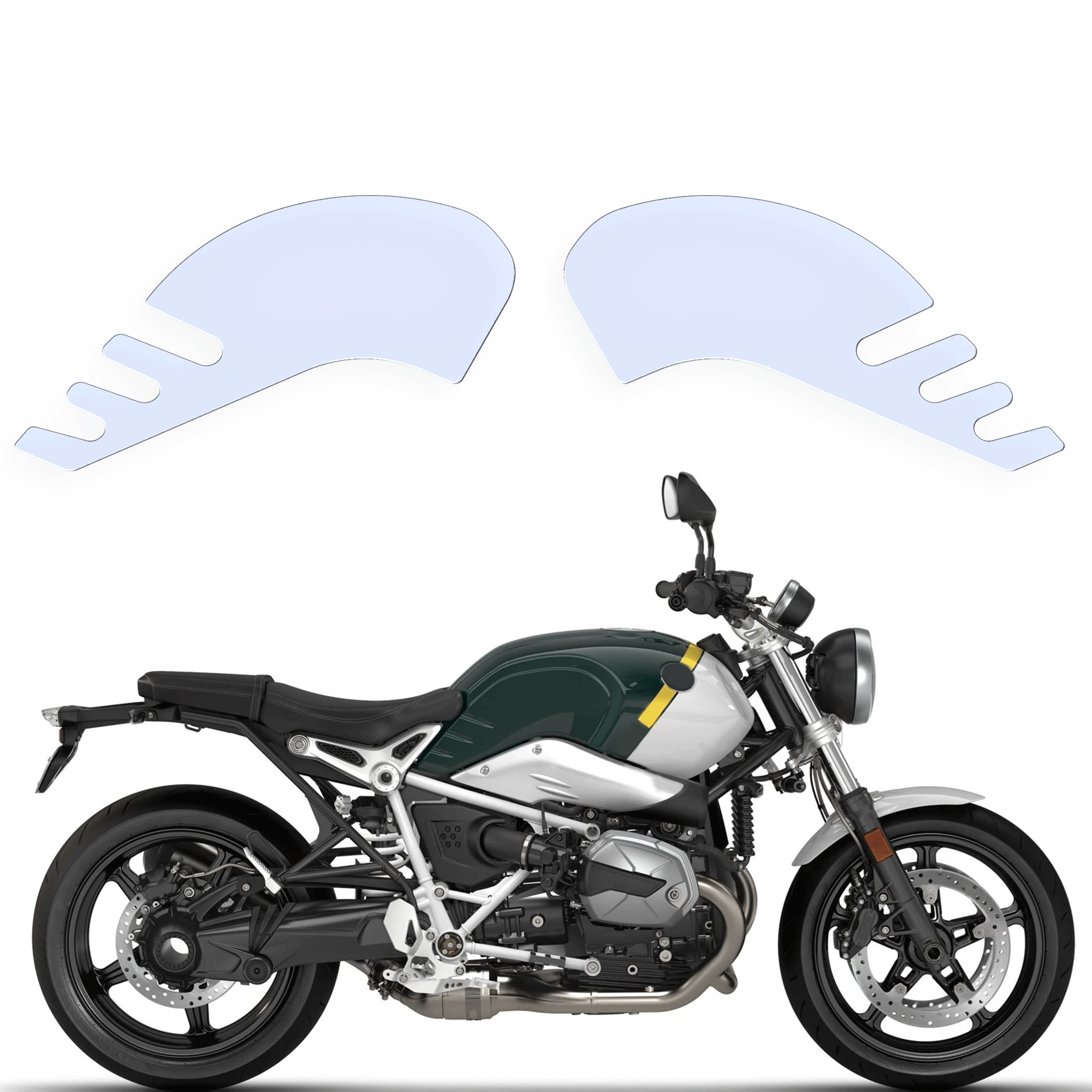 Transparente Tankschutzfolie für BMW R NineT Pure (2021-2023). Das selbstklebende Tankpad schützt zuverlässig vor Kratzern durch Reißverschlüsse, Gürtelschnallen oder Tankrucksäcke. Passgenau für die Tankform geschnitten und nahezu unsichtbar – ideal für sportliche Motorräder, die ohne optische Veränderung geschützt werden sollen. UV-beständig, wetterfest und rückstandslos entfernbar. Der perfekte Lackschutz für Supersportler, Tourer und Naked Bikes.