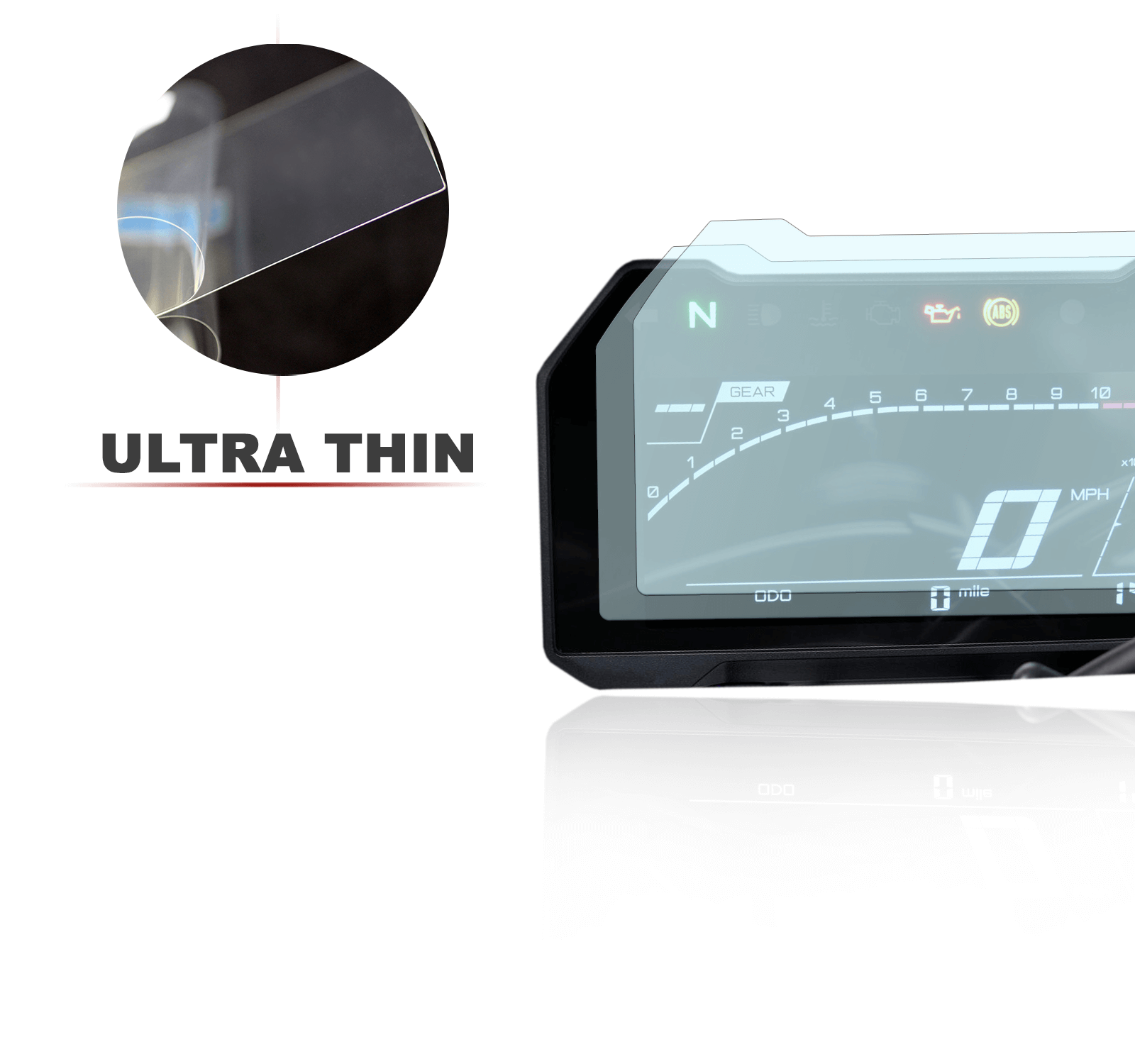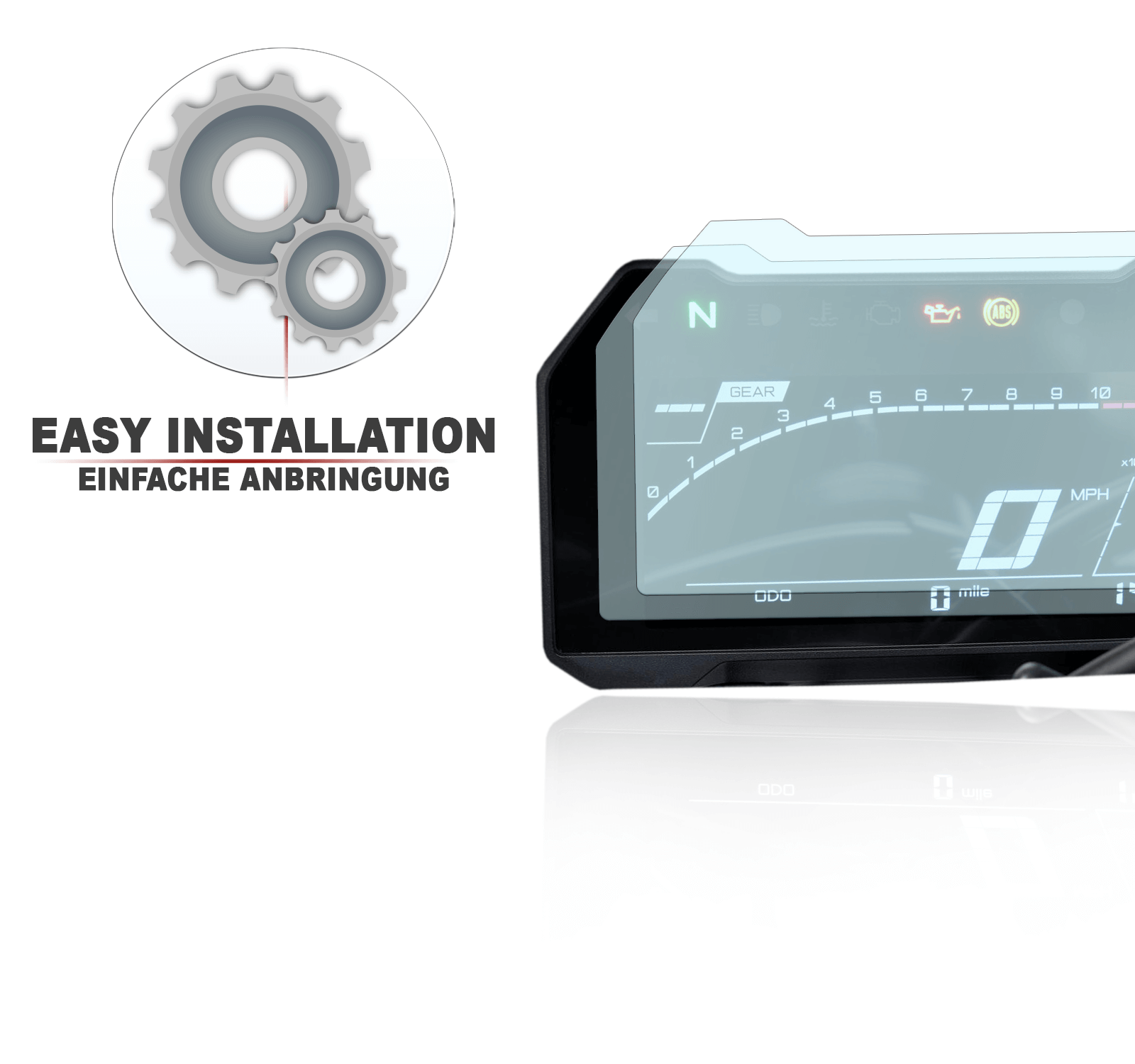 La nostra pellicola protettiva può essere applicata in pochissimo tempo. Con istruzioni chiare e senza bisogno di strumenti speciali, puoi applicare la pellicola sul display del tachimetro della tua moto in modo semplice e veloce. Goditi una protezione istantanea con il minimo sforzo e la massima efficienza. Con Moto Screenies, il tuo display sarà protetto in un attimo!