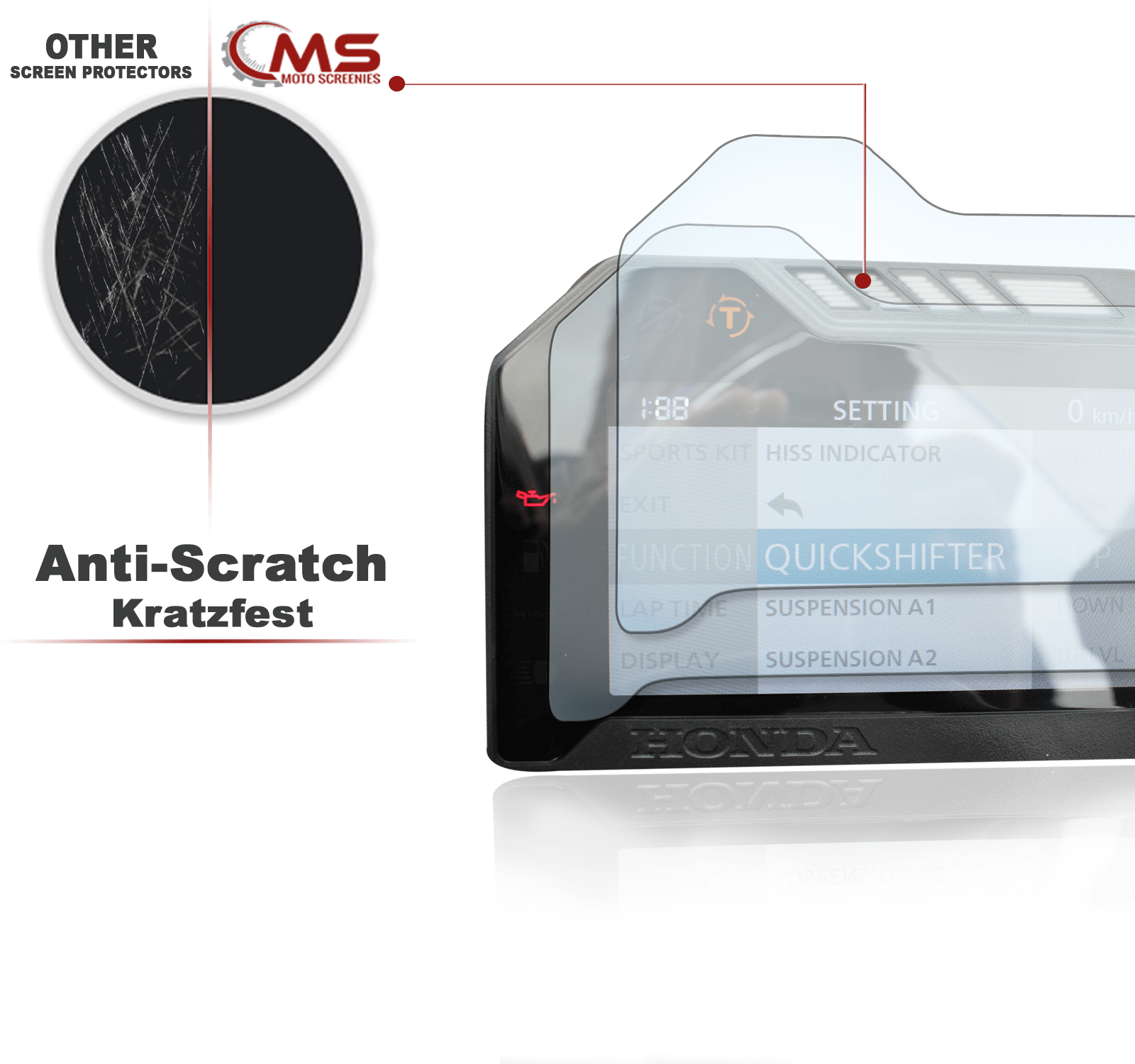 Honda CBR600RR 2024+ Displayschutz-Folie Moto Screenies Tachoschutzfolie Schutzglas-Folie Displayfolie Made in Germany